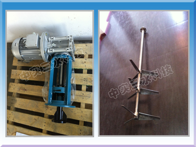 3、偏心安裝要求:因為攪拌罐內(nèi)的特殊要求,攪拌機必須偏心安裝。為了響應(yīng)這一特殊要求,我們制定了三層軸流推進槳的方案,在滿足大流量的攪拌要求的前提下,將攪拌轉(zhuǎn)速降低下來,有效避免攪拌槳與側(cè)壁碰撞,減小槳軸的徑向跳動幅度,同時還能充分節(jié)能。