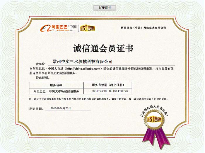 阿里誠(chéng)信通會(huì)員證書(shū)