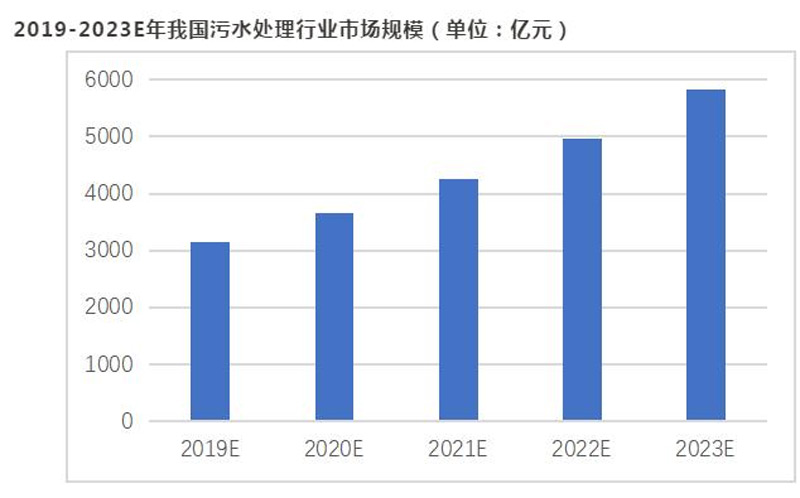 受國(guó)家政策支持、各方資本涌入、技術(shù)工藝革新等因素驅(qū)動(dòng),我國(guó)污水處理行業(yè)將持續(xù)快速發(fā)展,預(yù)計(jì)到2023年,我國(guó)污水處理行業(yè)市場(chǎng)規(guī)模將達(dá)到5820億元,2019-2023年復(fù)合增長(zhǎng)率達(dá)14.7%。